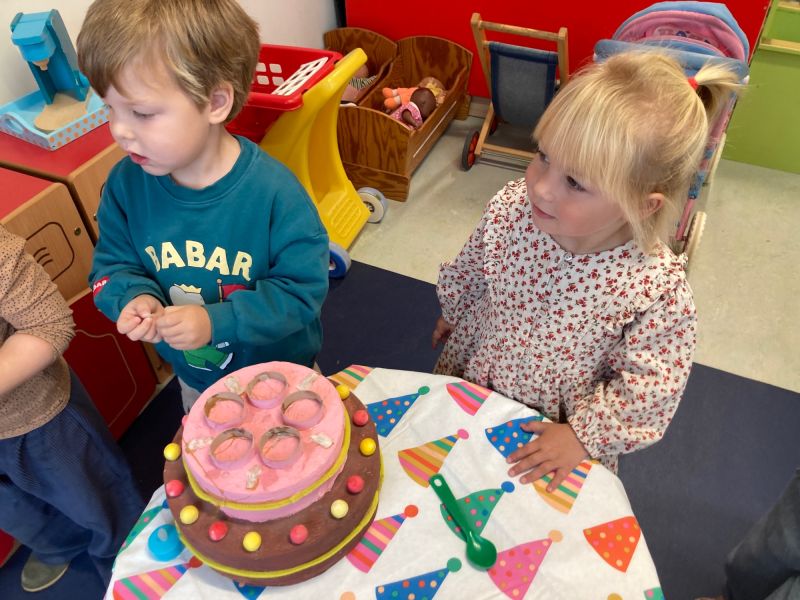 Jules was een beetje verdrietig, hij wou ook jarig zijn. Samen telden we af naar zijn dagje! We leerden over cupcakes en (slagroom)taarten. We versierden onze klas met slingers en zetten de feesttafel alvast klaar! We gingen fijn experimenteren met ballonnen. Zo toverden we weer een lach op Jules zijn gezicht!