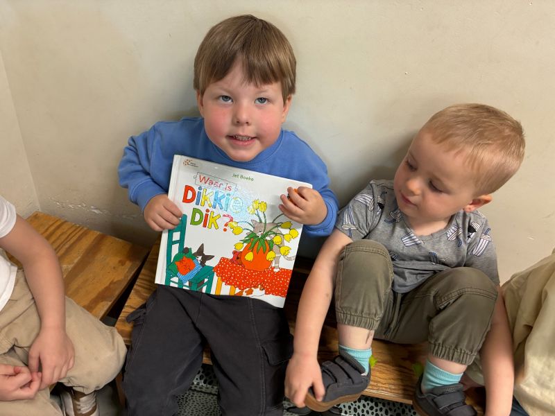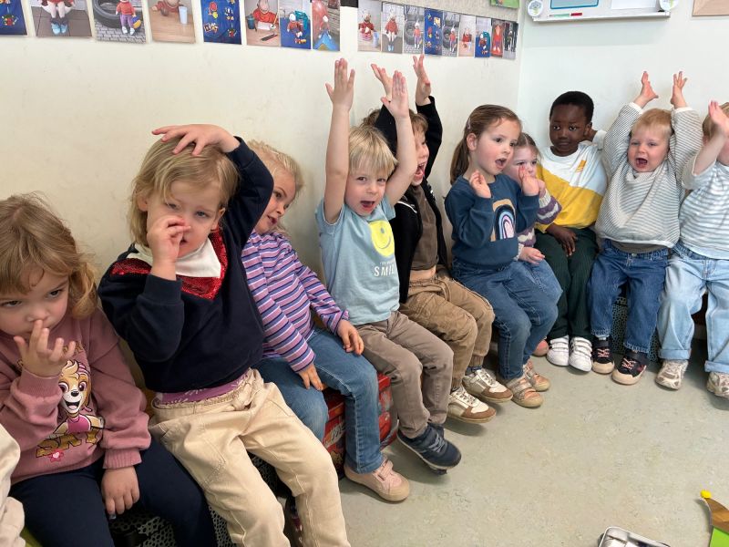 In maart waren er 4 jarigen in de pauwenklas. Seb, Nora Pr en Charles mochten al 4 kaarsjes uitblazen. Offranel had 3 kaarsjes op de taart. hieperdepiep hoera!!!